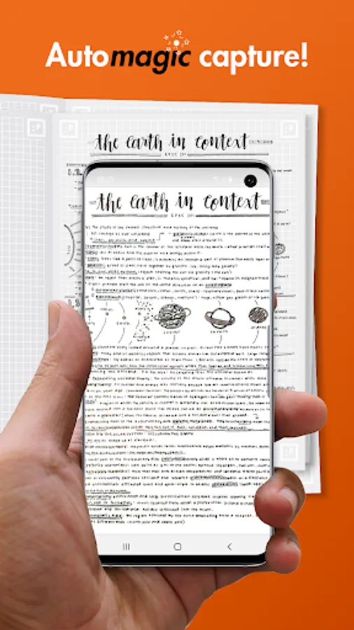 The Whitelines App will capture your notes automatically when it detects all four corner codes on your Whitelines Paper and adjust the image to make it useful to you.