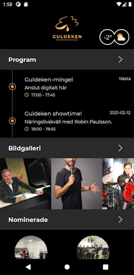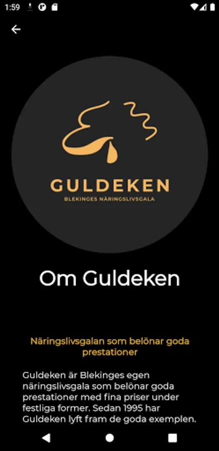 Guldeken is a business gala that awards prizes for good performance in the business community in Blekinge. In addition to the Blekinge Tourism Prize, prizes are awarded in the categories Sustainable Blekinge, Young Entrepreneur of the Year, Made in Blekinge, Growth Prize of the Year, Best Blekinge Company and Blekinge Ambassador of the Year.