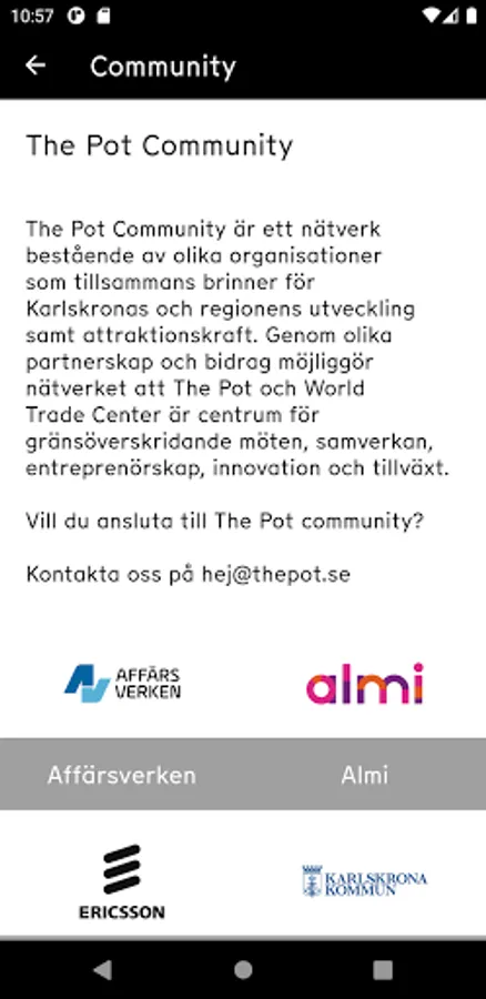 The Pot app is a tool for people who want to build bridges between Karlskrona and the world. Who wants to be part of the development and drive innovation and ideas into the future. Together we make the impossible possible and make our region grow and meet a world that is in constant motion.