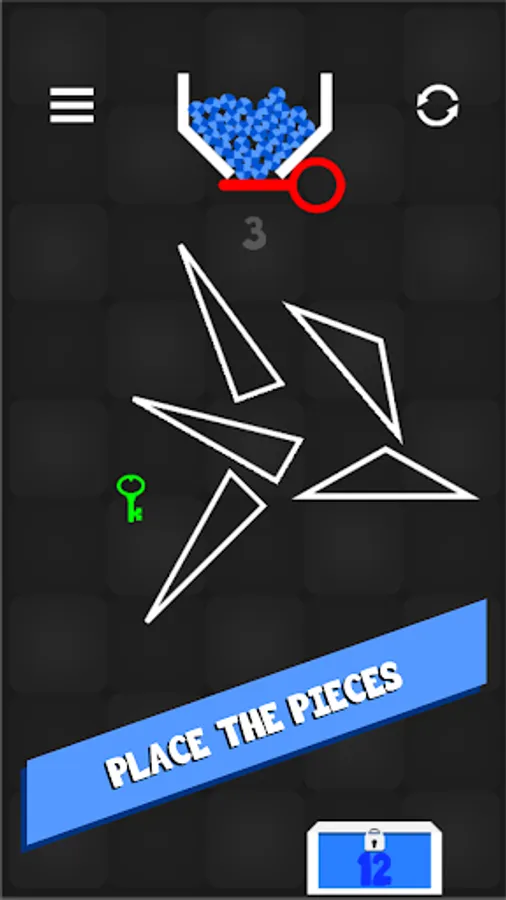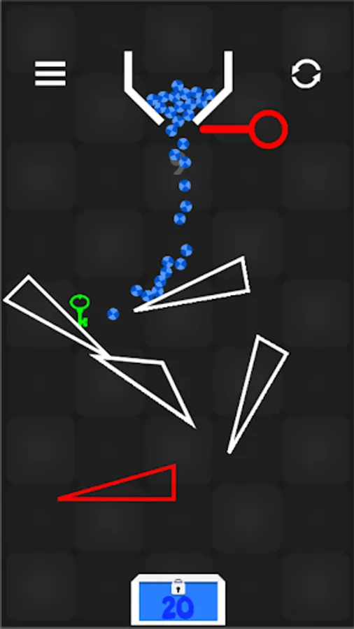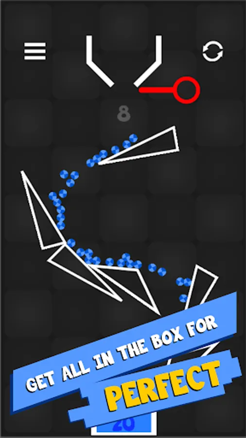 Simple to learn ball drop physics puzzle, place the pieces and dont forget to take the key(s) pull the pin and get enough balls in the box.....get all 30 in the box for "Perfect"