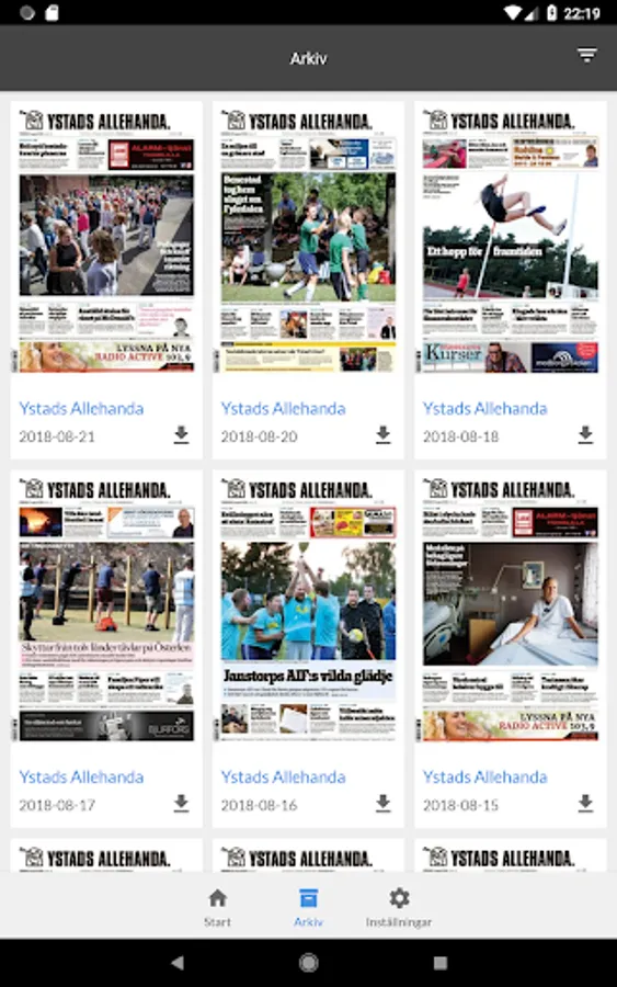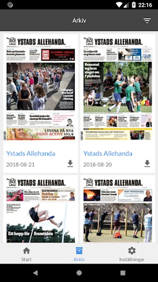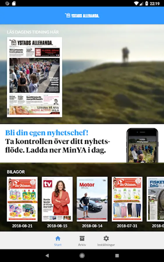 EYA is free to download, then you can choose to either buy single copies directly in the app or take out a subscription to ystadsallehanda.se