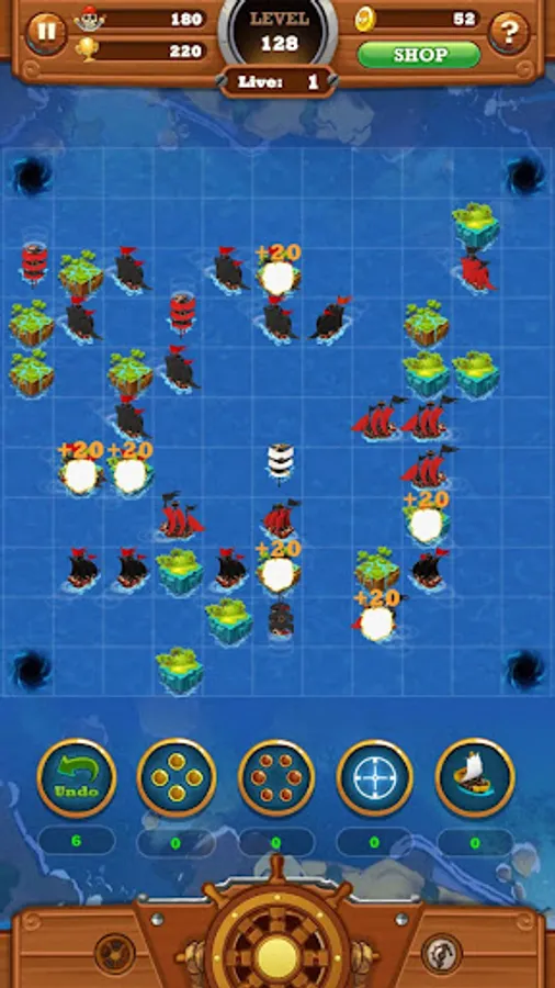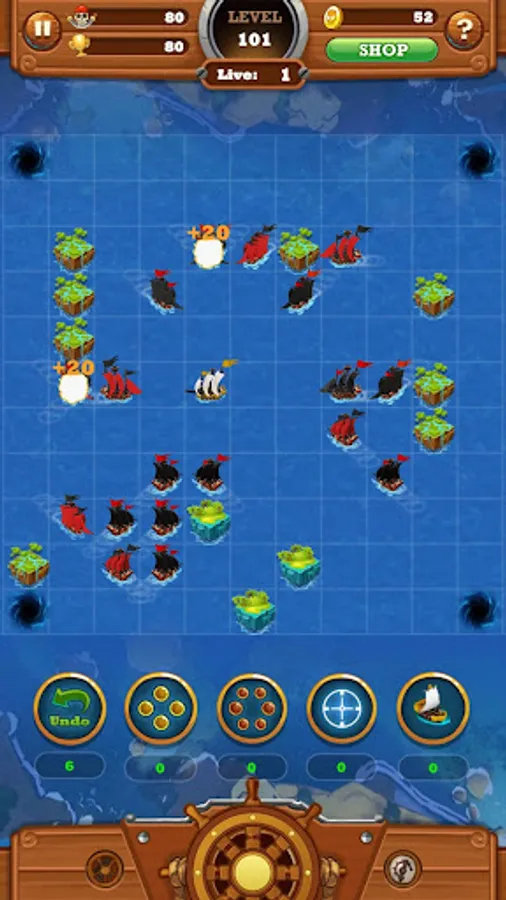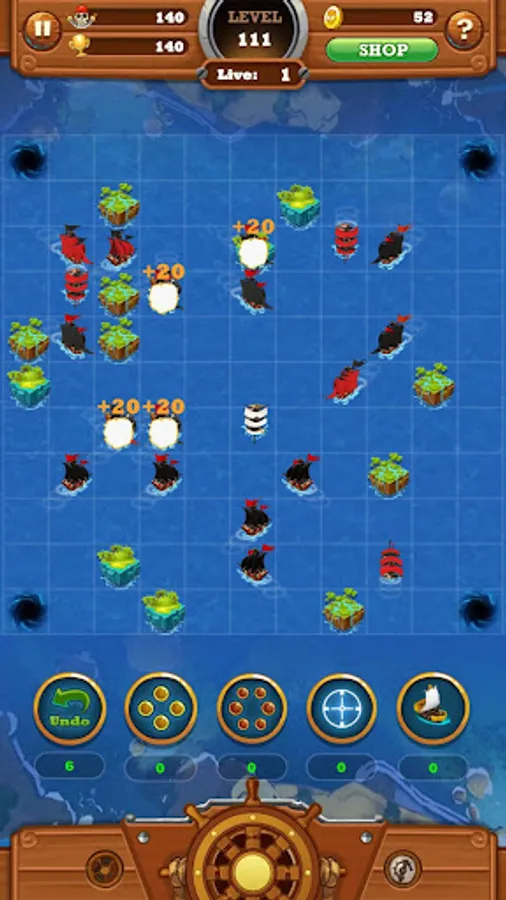 - The shop offers Strong cannons, escape charms,... you can use strong cannon to destroy pirates easily.