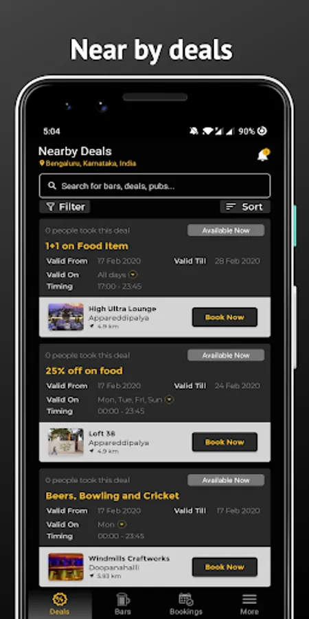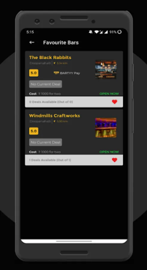 A: No. If you have booked the deal from BARTYY you will get the ‘Preference’ for availing that deal once you reach the bar during those deal hours. Redeeming the deal is subject to its availability and also at the discretion of bar owner/manager. BARTYY is used by users to ‘Check’ the live deals running at the bars nearby and used by bar owners to update their deals on the App. The ‘BOOK NOW’ action is just an additional feature for users to get the preference.