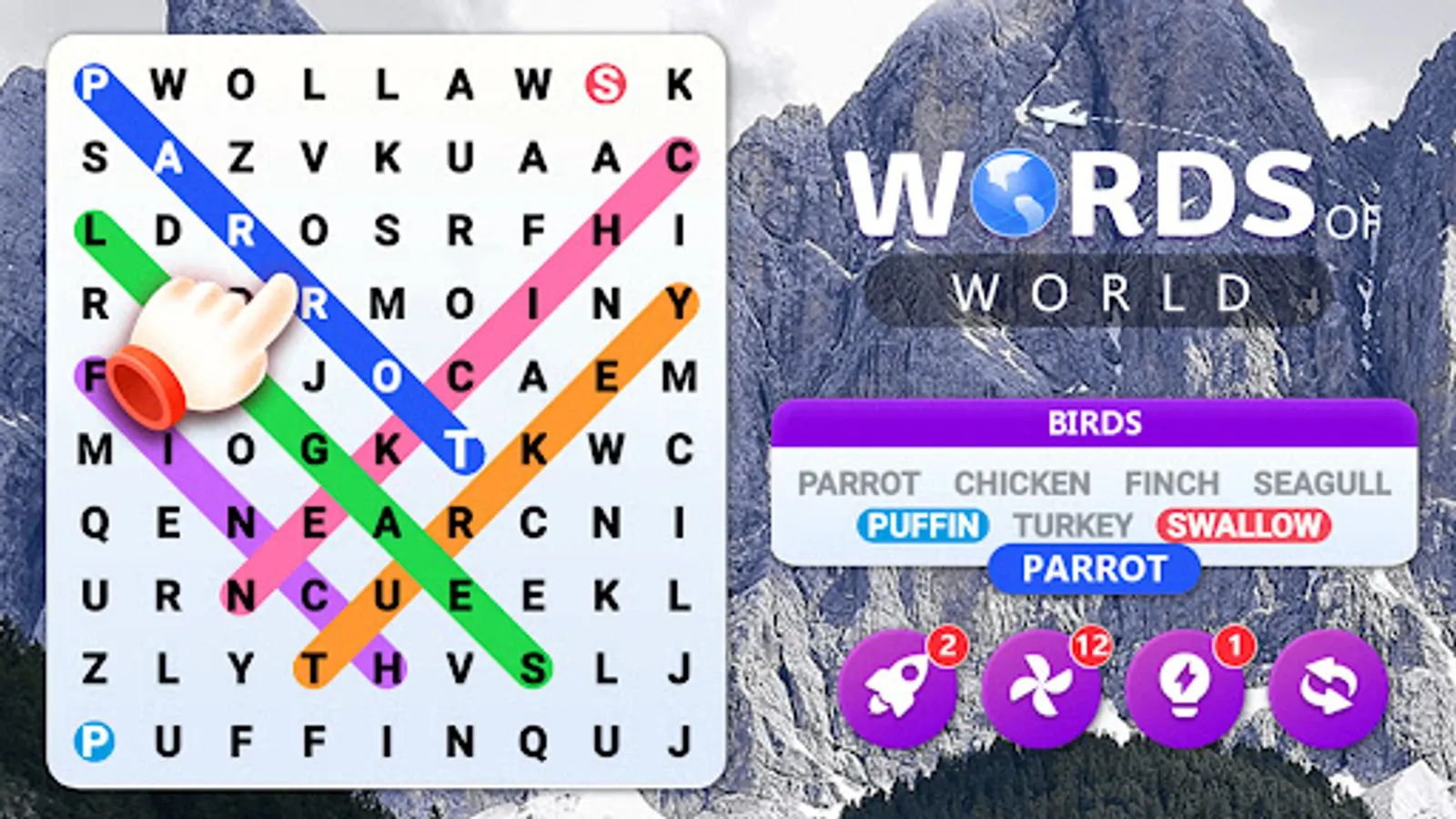 Discover a colorful world of words in this free 🆓 offline word puzzle game 🎮. Words of World challenges you to find related words hidden 🕵️♀️ in letter grids. Glide your finger ☝️ to connect letters and form words tied to a theme 🔗. As you progress 🏃♀️, the word puzzles get tougher 💪. Earn rewards 🏆 and use hints 💡 to learn new words 📚 along the way. With word games like wordscapes 🌄, crosswords ➕, and scrabble 🎲, Words of World takes word puzzles 🧩 to the next level 🆙.