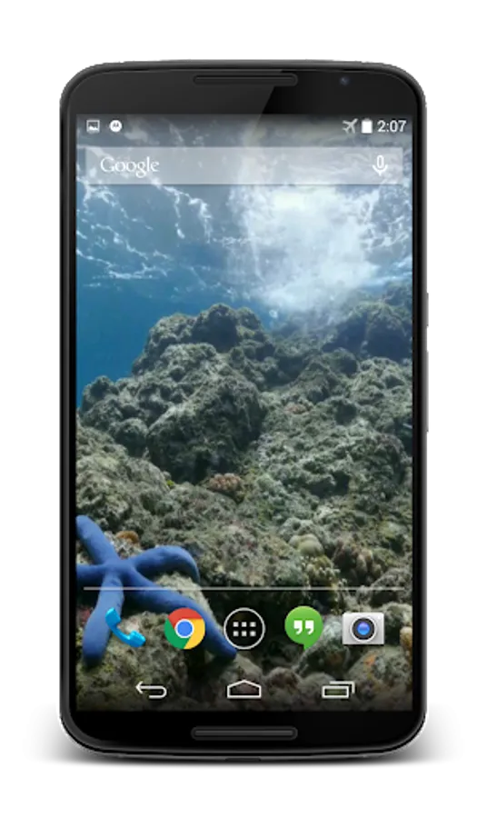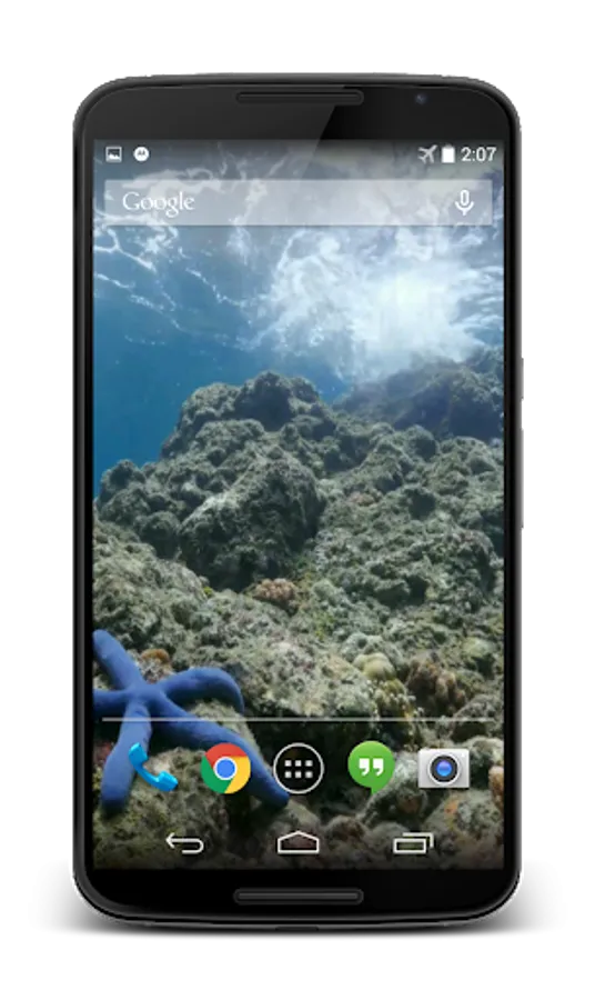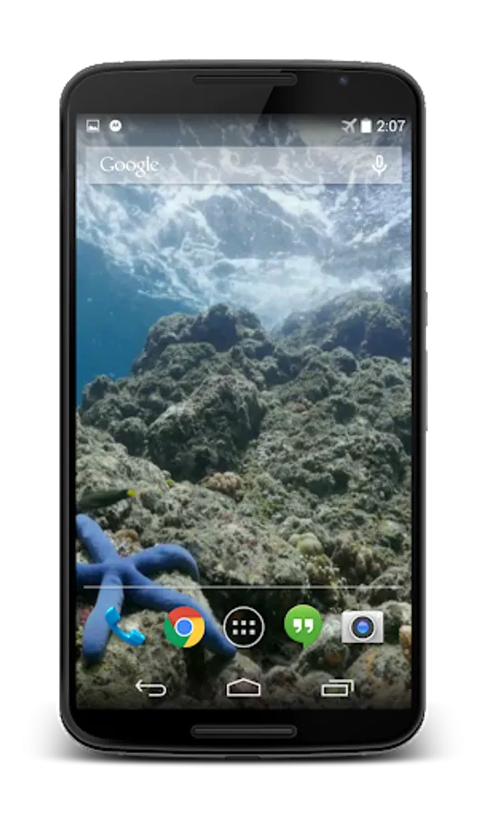 Amazing video live wallpaper based on realistic underwater video with sea star and coral reef.