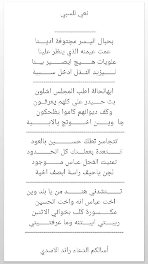 يحتوي تطبيق نعي مكتوب على مجموعة من قصائد النعي المكتوب لجميع المناسبات سواء في شهر محرم الحرام او غيره من المناسبات كإستشهاد أئمة اهل البيت عليهم السلام