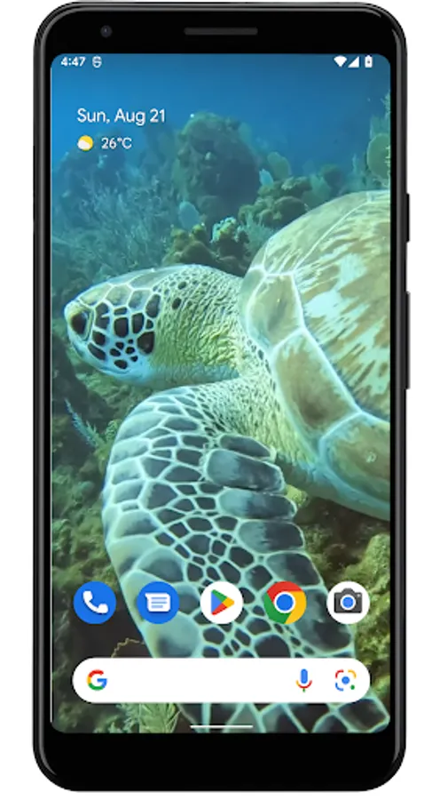 Video live wallpaper / video background with beautiful sea turtle near reef.