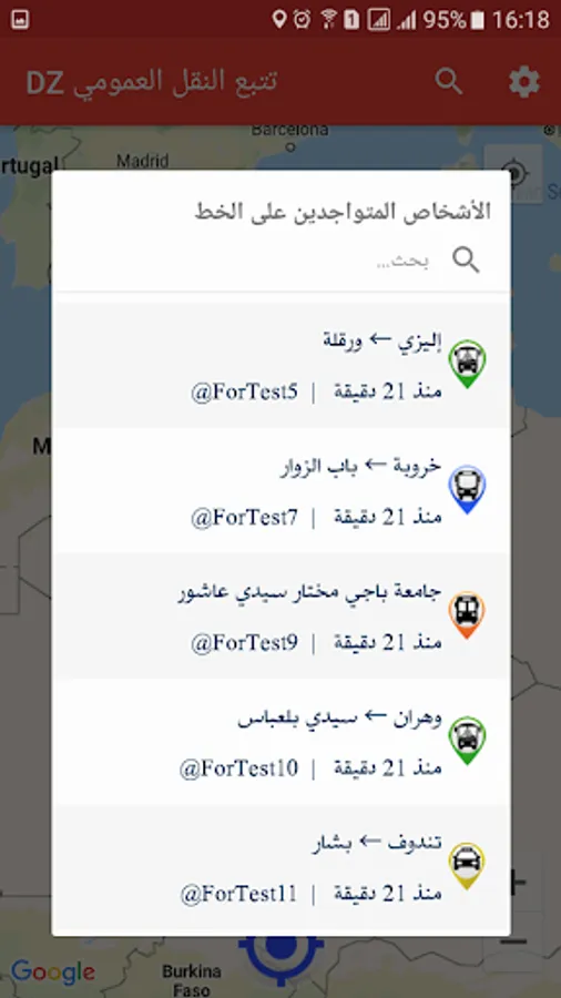 - Anyone can follow the buses participating by other people in the map without having to register in the application or use GPS.