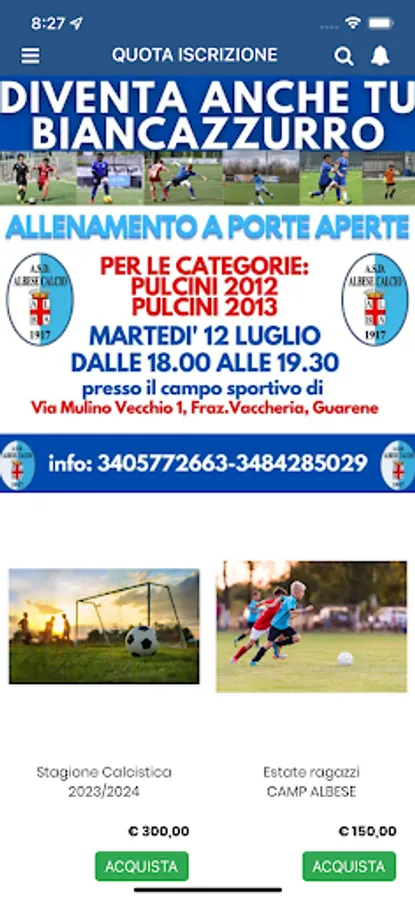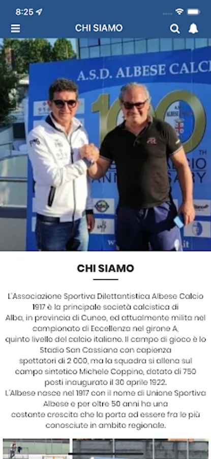 The Albese Calcio 1917 Amateur Sports Association is the main football club in Alba, in the province of Cuneo, and currently plays in the championship of Excellence in group A, the fifth level of Italian football. The playing field is the Stadio San Cassiano with a capacity of 2,000 spectators, but the team trains on the synthetic pitch Michele Coppino, with 750 seats inaugurated on 30 April 1922.