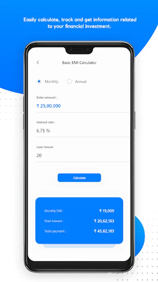 This smart and easy app is one stop solution to your financial calculation . You can easily calculate , track and get the information related to your financial investment .