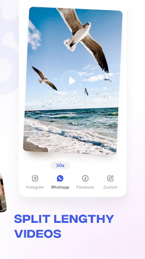 Using one app for all social media platforms, split video with a set custom duration. Split videos easily and quickly.