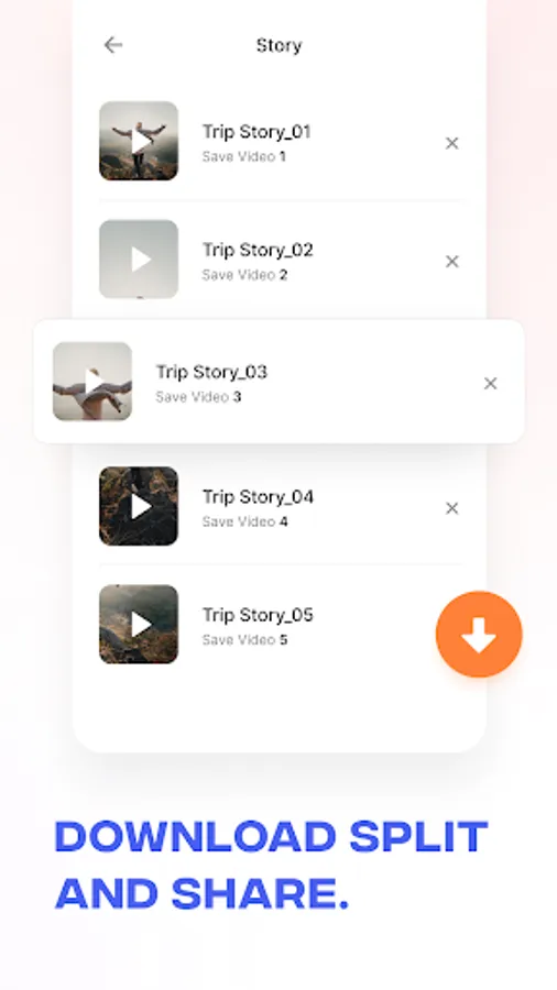 Split your long videos into stories and share them on social networks! Split Video Trimmer - SH is specially designed for WhatsApp Status, Facebook, Instagram Story and Snapchat.