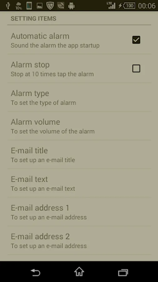 Tap the stop button ten times to set whether to stop the security alarm
