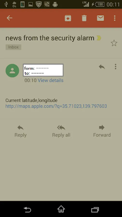 In the delivered mail, there is a URL indicating the present location of the sender, and by simply clicking it, the location of the sender can be found by displaying the map.