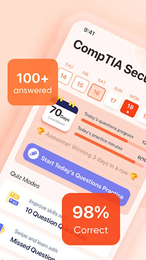 CompTIA Security+ Prep 2023 is an exam preparation application that will help you pass the Information Security Engineer certification exam (codenamed SY0-601) administered by the Computing Technology Industry Association (CompTIA) with a high score on your first attempt.