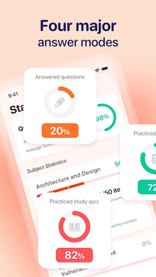 - Specialized practice by content area, with the flexibility to switch between them at any time