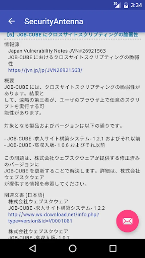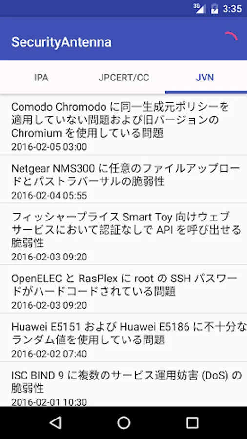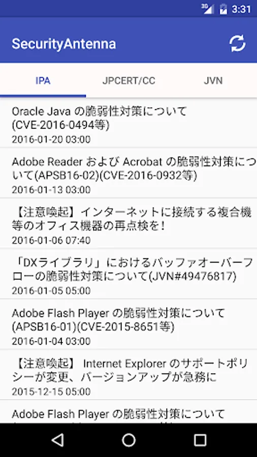 In "Security antenna" is "IPA Information-technology Promotion Agency important security information", "JPCERT / CC reminder & Emergency report", "countermeasure information of JVN New / Update"