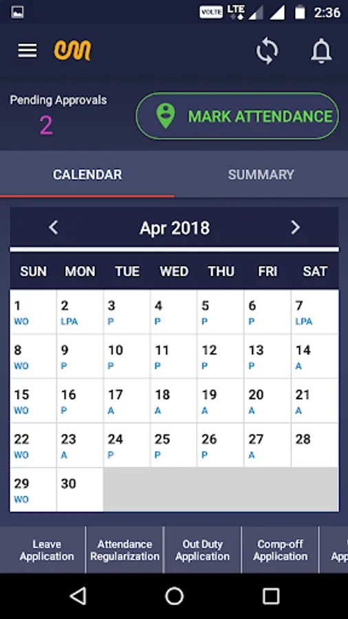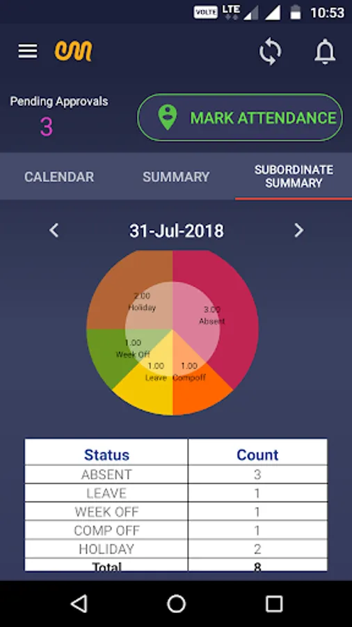 * Depending upon the user roles & privileges provided, employees canView their attendance status & statistics