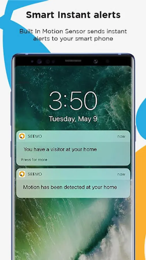 With built in motion sensors, SEEMO devices send instant event alerts to customers smart phones. Users can directly See & Speak through the app with 2 Way communication and live video anytime, anywhere in the word. Secure cloud storage ensures your data is always safe.