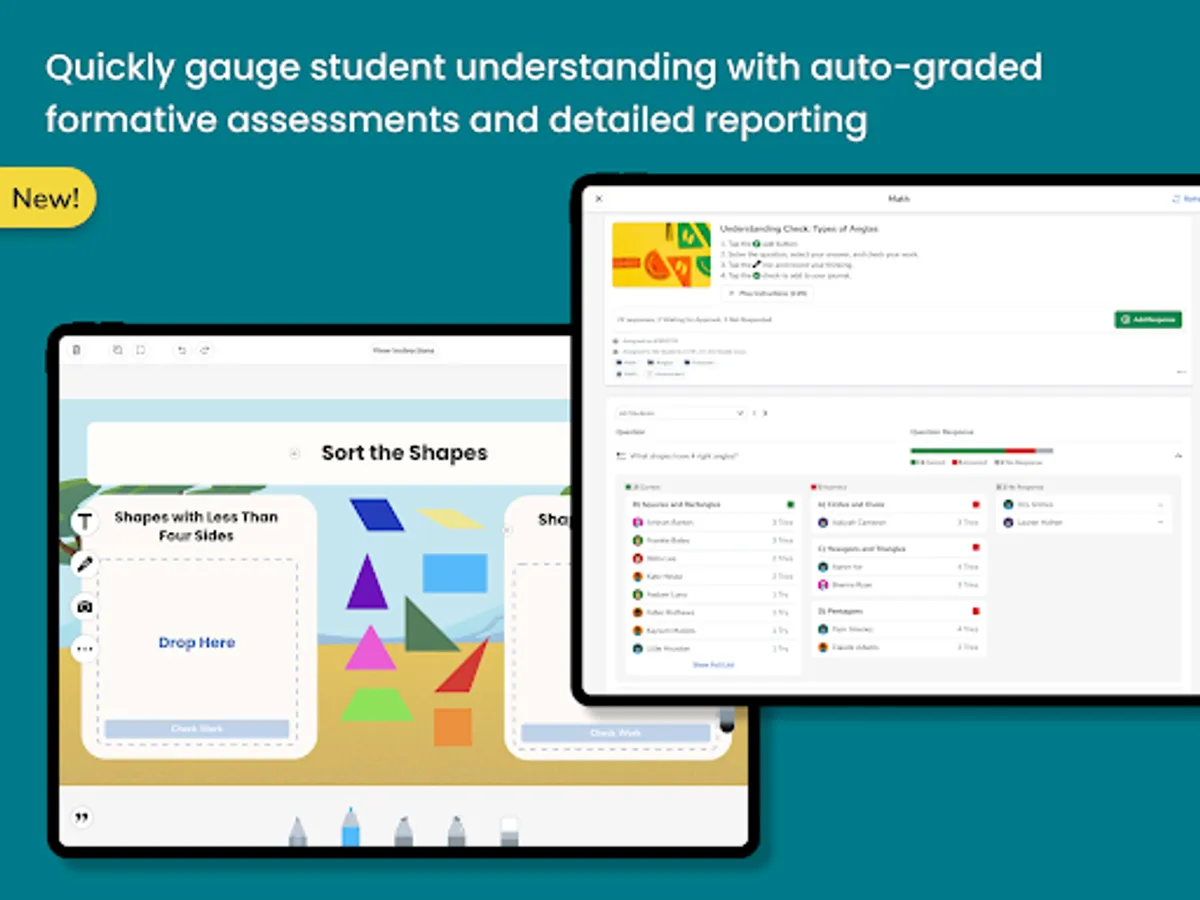 - Formative assessments with auto-graded questions provided detailed and actionable reporting