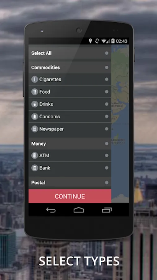 With Box Locator you can find a wide variety of machine types for the vending of cigarettes, soft drinks or snacks quickly and easily. But also the nearest ATMs, Mailboxes or Post Offices can be localized on the map.