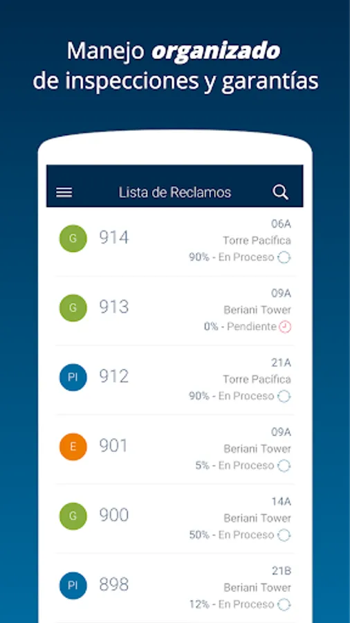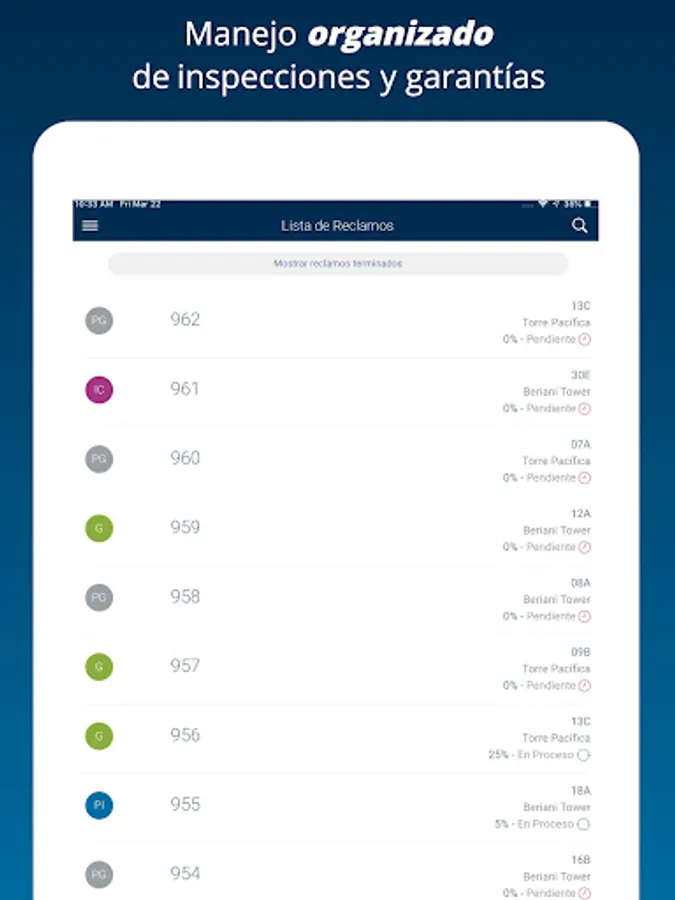 • Control of deliveries: Have greater visibility and know what properties are to be delivered in the week or month, in addition to which have cases to be resolved.