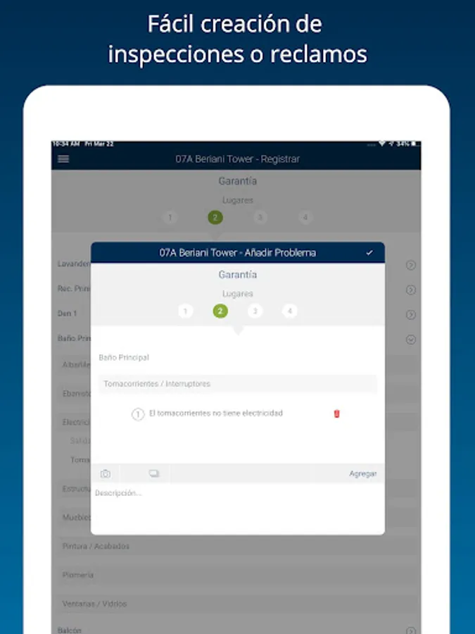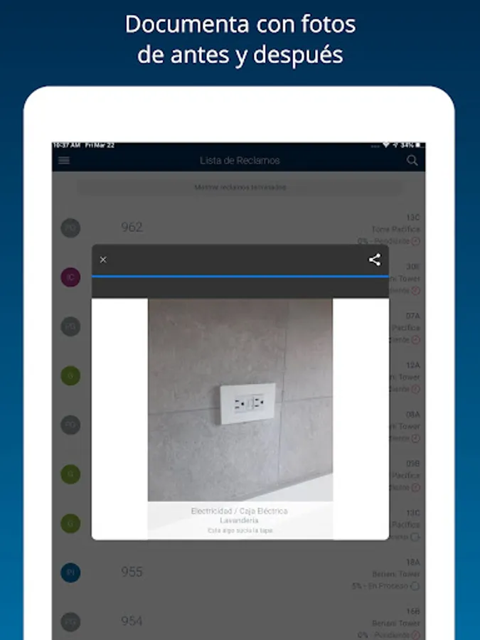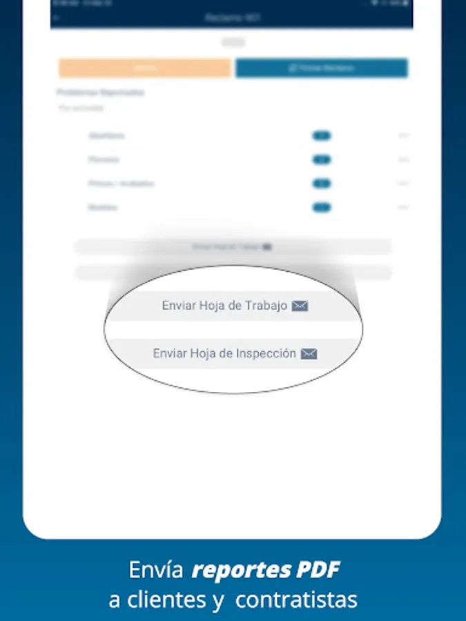 • Pre-inspections and Exceptions: Punch-list that will help you make a record of the revisions on the day of delivery of the property, and receive on-site approvals from customers.