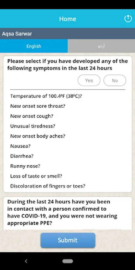 Sehat Check is a screening app to control diseases spread.This is a patient safety requirement and this App is developed to control the spread of diseases amongst