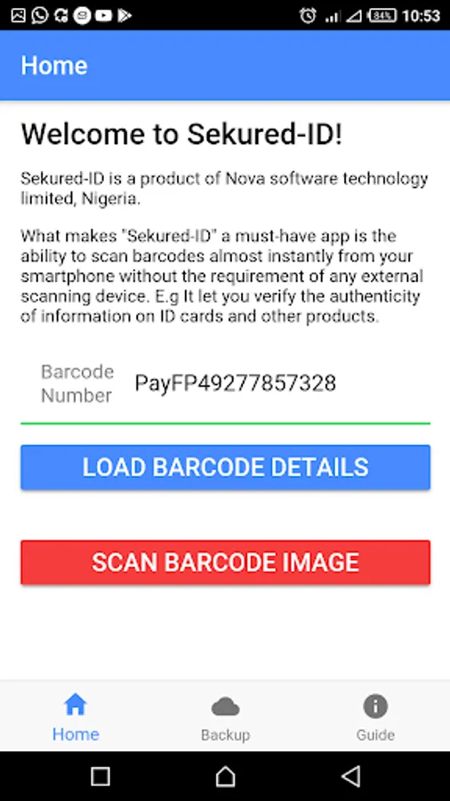 What makes "Sekured-ID" a must-have app is the ability to scan barcodes almost instantly from your smartphone without the requirement of any external scanning device. E.g It let you verify the authenticity of information on ID cards and other products. This is the easiest way to verify details on ID cards and other products using barcode cloud technology. We are the first company in Nigeria to provide a central cloud based system for verifying ID cards details coming from different sectors of the country.