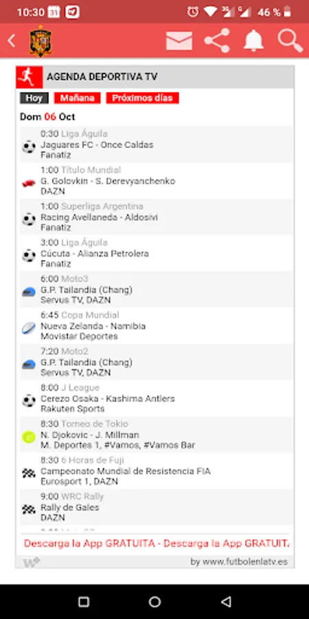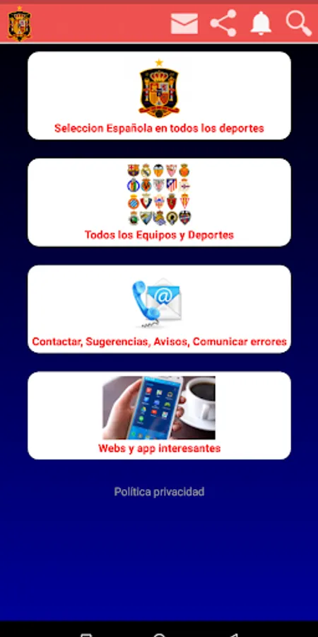 - With this application you will no longer miss any televised and open game of the Spanish team of all sports. And you will also find more useful information.