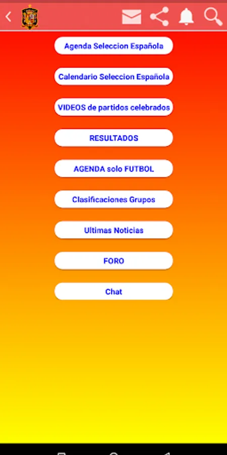 ALERTS: The application sends you a free message, several hours before a match of the Spanish National Team begins