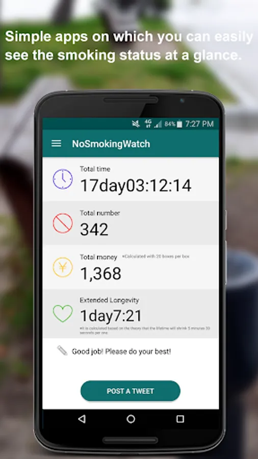 You can find out how much length of the time you have kept smoking cessation and how many pieces of tobacco you have saved.