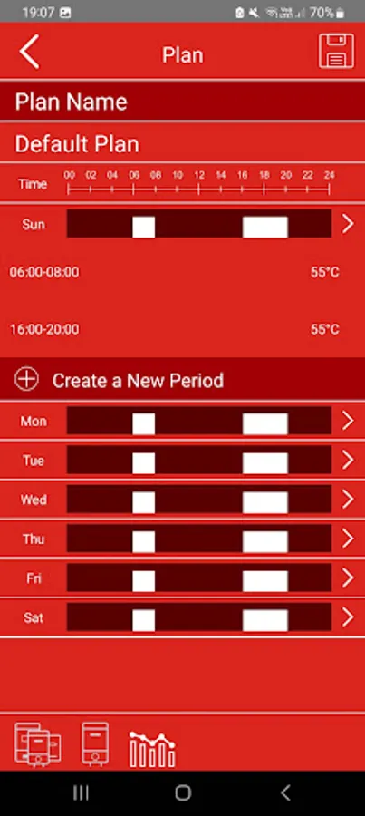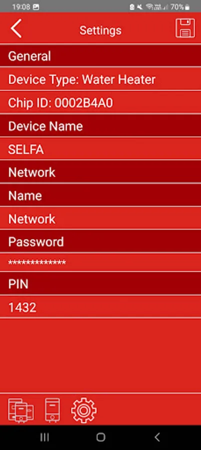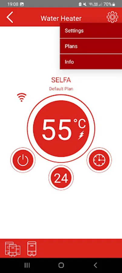 Integrated Wi-Fi module enables wireless connection to your SELFA Smart Heater Device. The remote control is provided via this app.