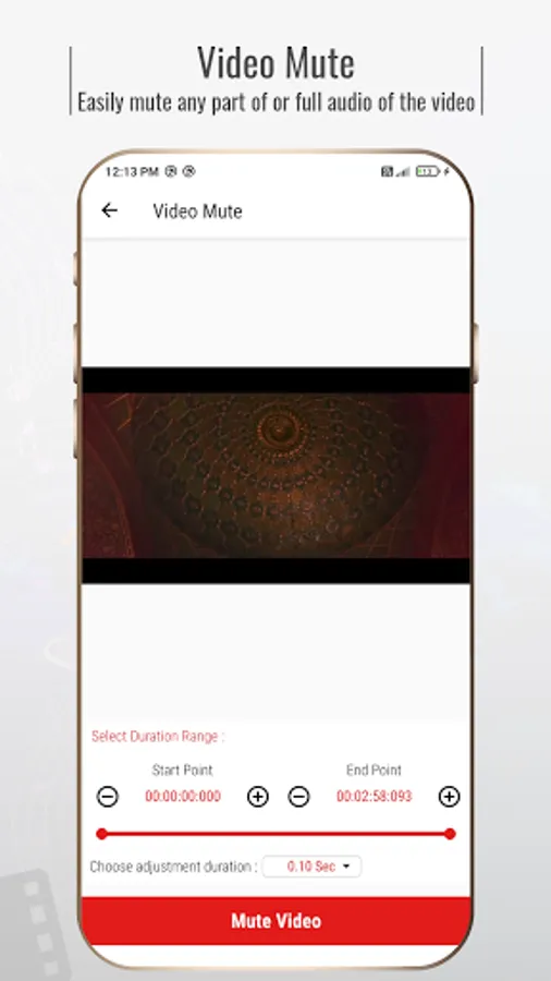 Video Mute: You can mute or remove audio from video files quickly using video mute by choosing some part of or full audio of the video.
