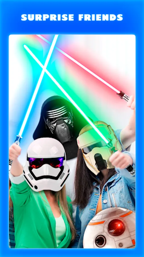 Ever dreamt of wielding a lightsaber and venturing into the cosmos as a true space hero? Try the lightsaber app and choose from a variety of camera effects and saber stickers to add that iconic weapon to your hero photos. Thanks to the photo editor, you can unlock the full potential of your hero photos by adding stickers of light saber, face filters and camera effects. Download the "LightSaber: Photo Editor" now and get ready to explore the space with filters for pictures. May the force be with you!