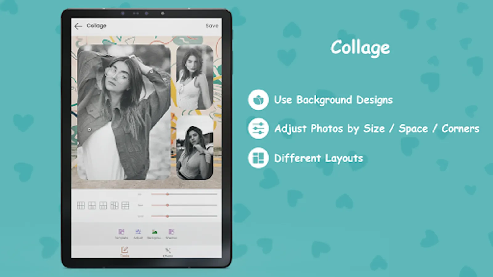 ❤ Create captivating collages using various layouts and frames available in the Collage Maker.