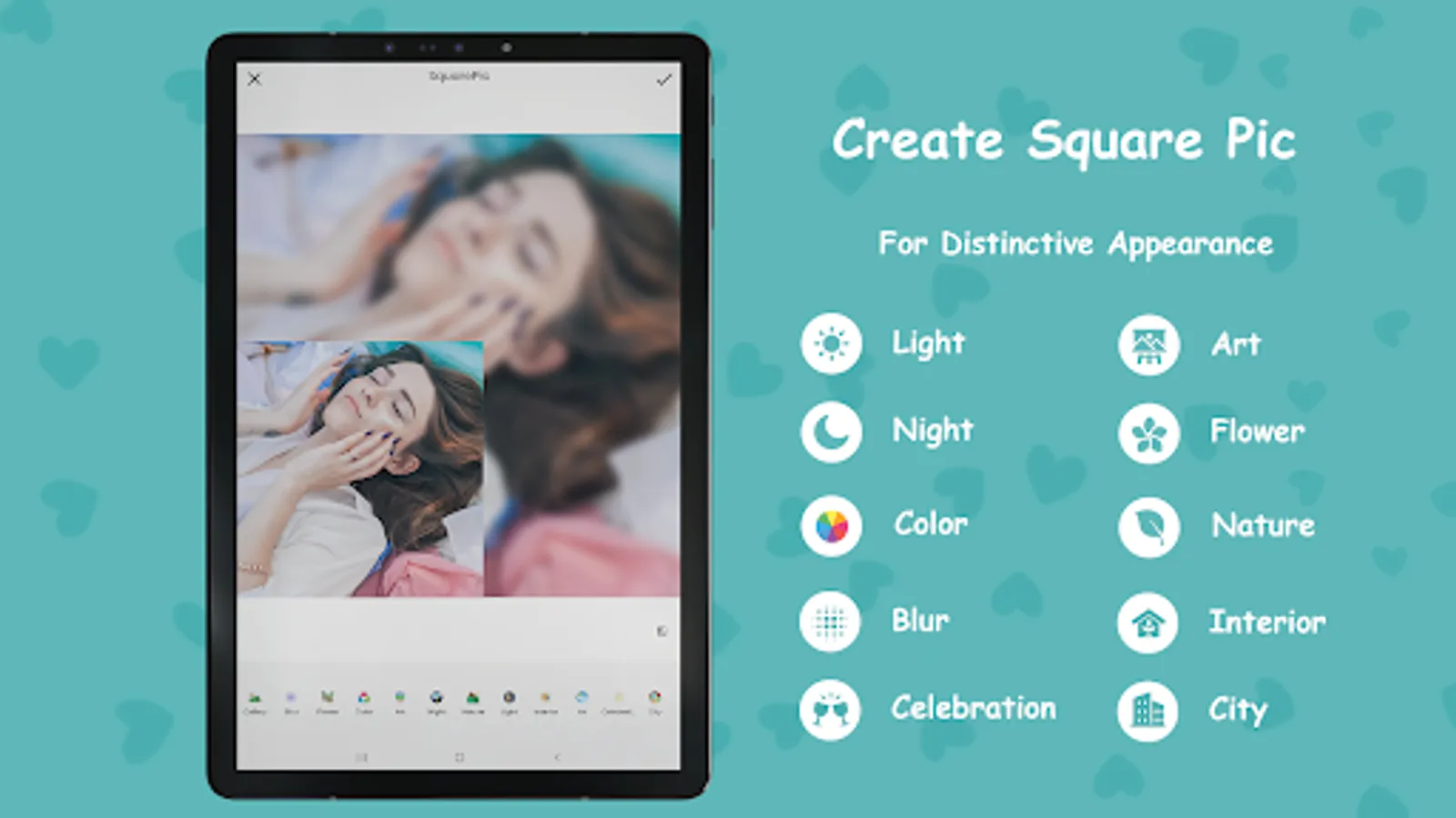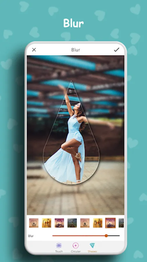 ❤ 12 Camera allows you to remove or Blur the background of your HD photos into various shapes like circles, hearts, squares, and more.