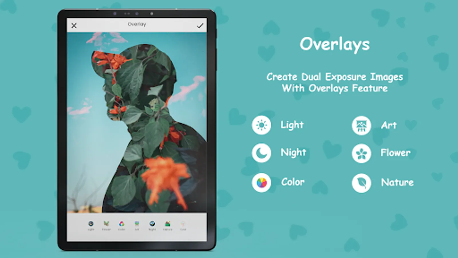 Overlay: Apply layers and customize transparency to achieve unique overlay or double-exposure effects.
