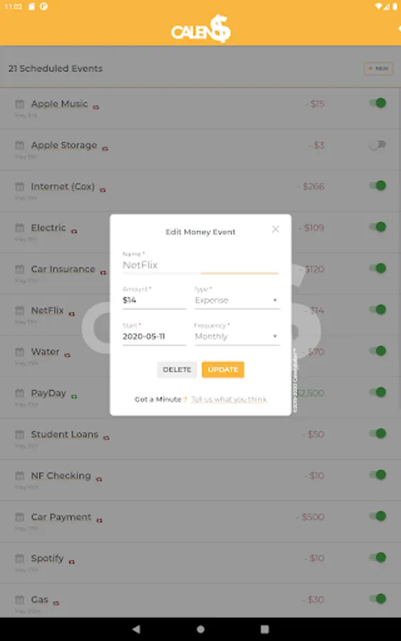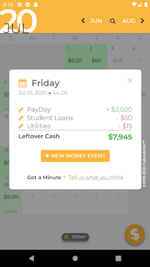 Calendollar is the ONLY app that allows you to plan for the future while giving you the financial peace of mind to live for the day... Simply input your expenses and income, one time or recurring, and Calendollar does the rest!