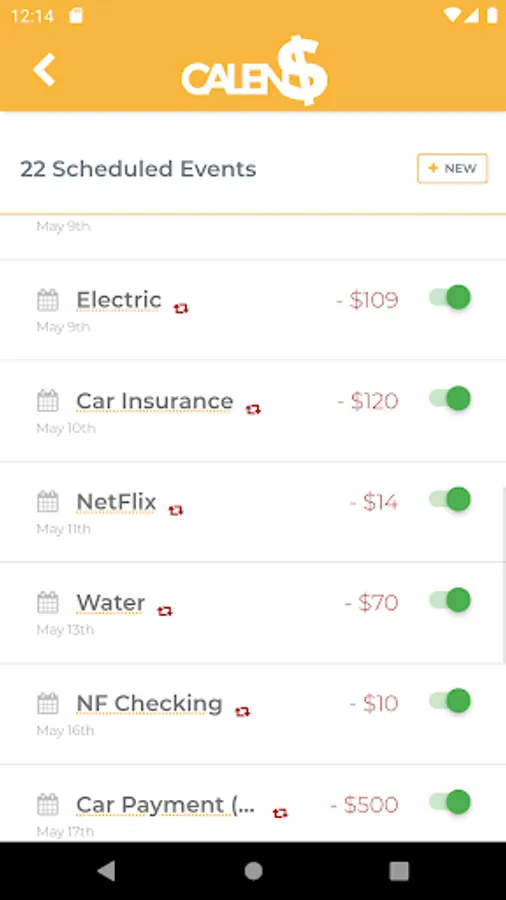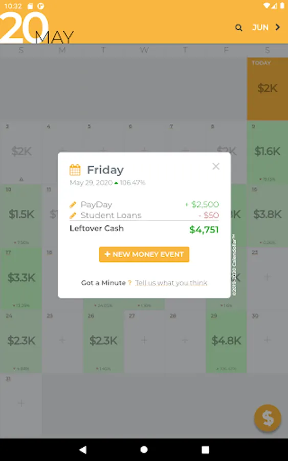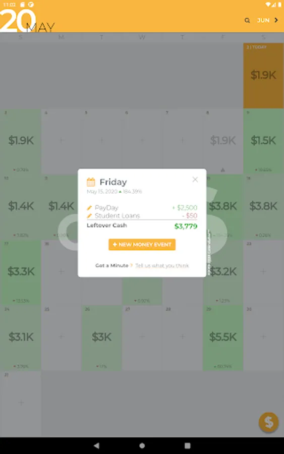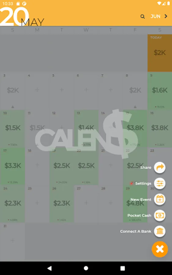 Calendollar allows you to peek into the future of your wallet by showing how much cash you will have available in 3 weeks, 6 months, or even years from now.