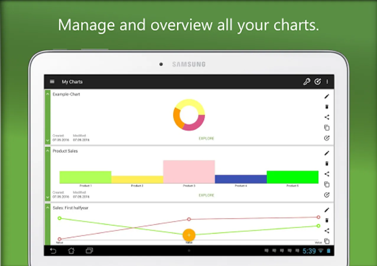 Bar-Charts, Bubble-Charts, Pie-Charts and Line-Charts are a great way to communicate information visually. The Graph Maker helps you to create, design and share your own charts within minutes. Perfectly suitable for making business charts and professional reporting. With its intuitive design and controls The Graph Maker is the best App for mobile graph creation.