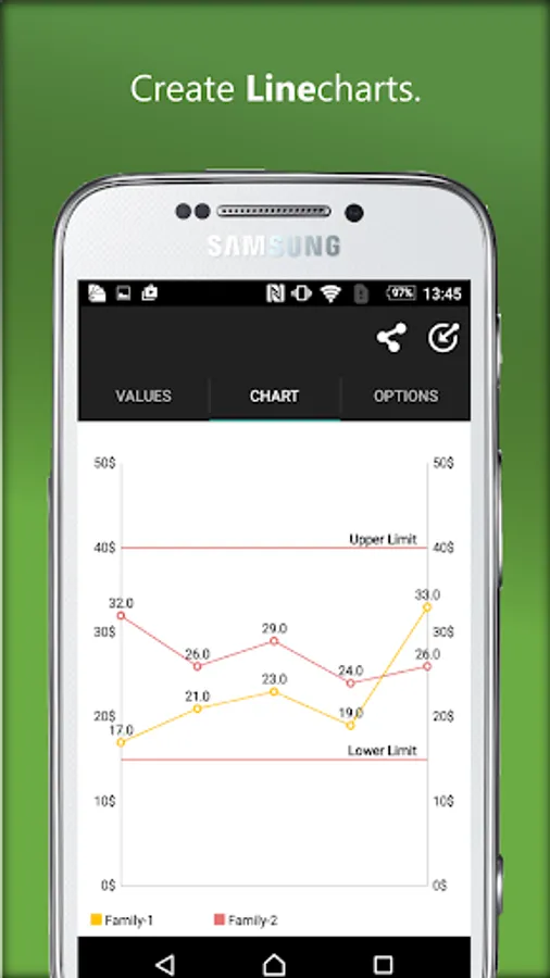 The Graph Maker is completely free of advertisements, has all features enabled and only a limitation regarding values/datasets. To remove this limitation, the proversion can be purchased within the app.
