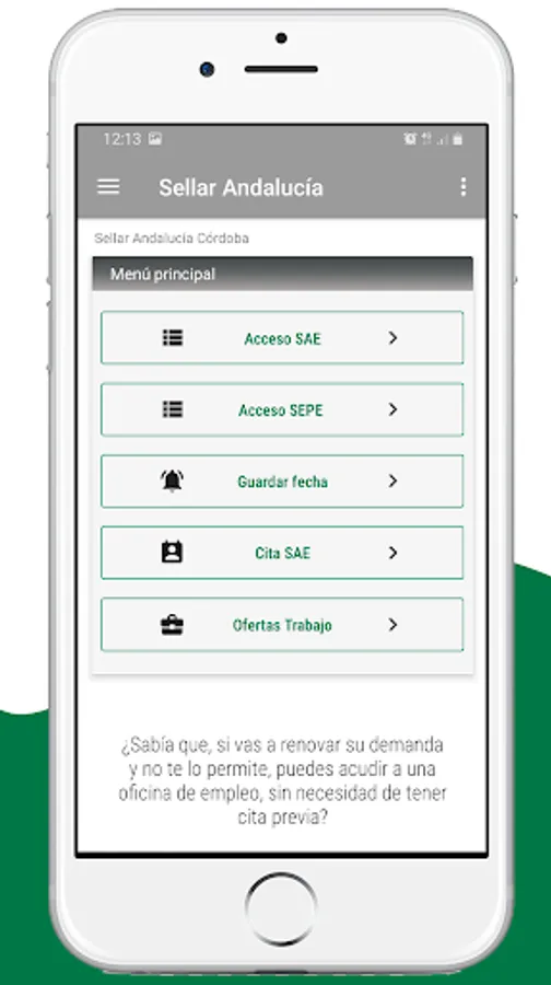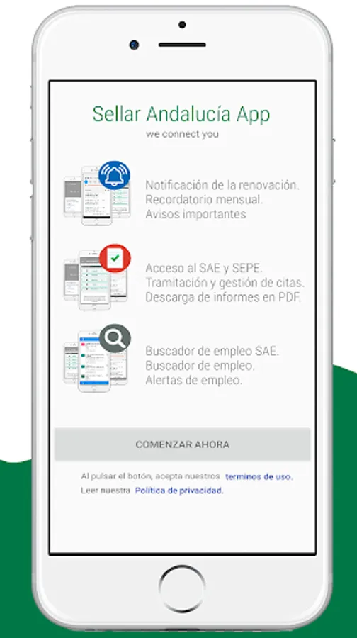 The sole purpose of the Sellar Andalucía app is to facilitate and inform people about how to renew the job application and other procedures.
