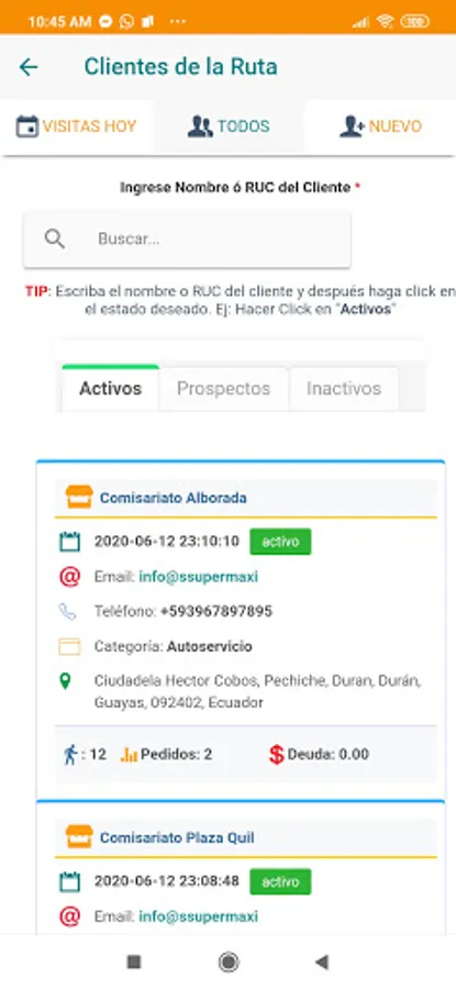 Mobile application for managing the sales channel with visits, real-time orders, customer management, prospecting, merchandising, customer georeferencing. The most complete mobile app to manage your sales channel. A CRM in the mobile of your agents, real-time notifications, orders, customer portfolio inquiries and collections in real time. Take inventory in the client, market surveys, digital signature, photos in deliveries and visits, Connect through our API with your favorite ERP: SAP, QuickBooks, Microsoft Dynamics, etc.