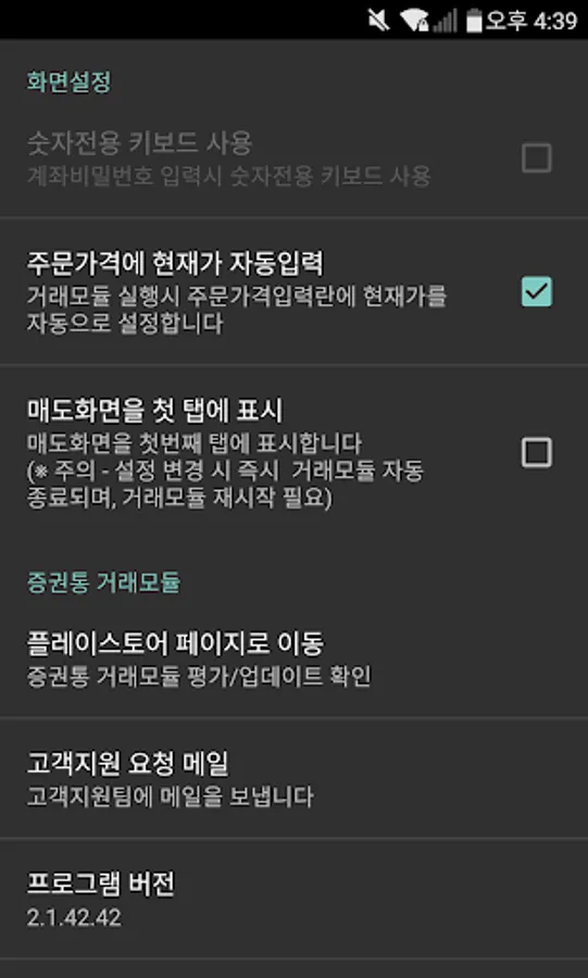 4. Setup (display the first tap of the sell screen, automatically enter the order price)