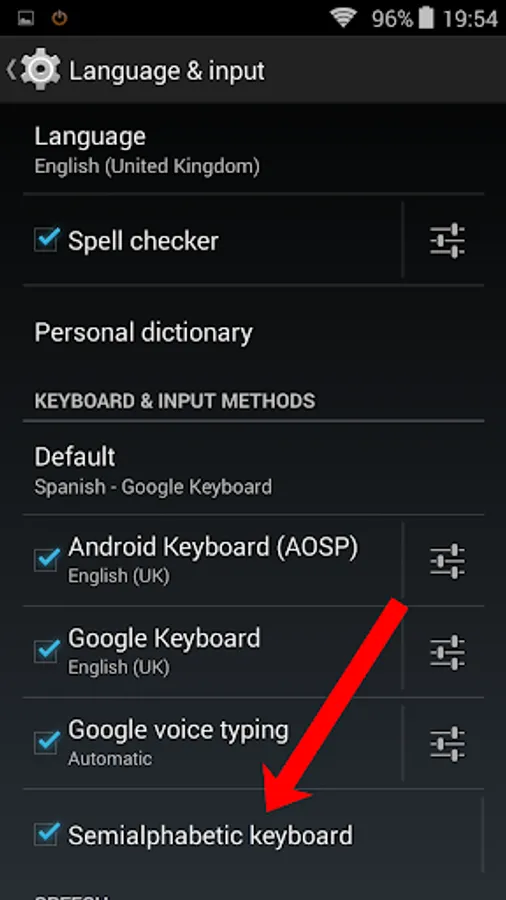 In the list of Installed Keyboards MARK THE BOX of the Semialphabetic Keyboard (See picture).