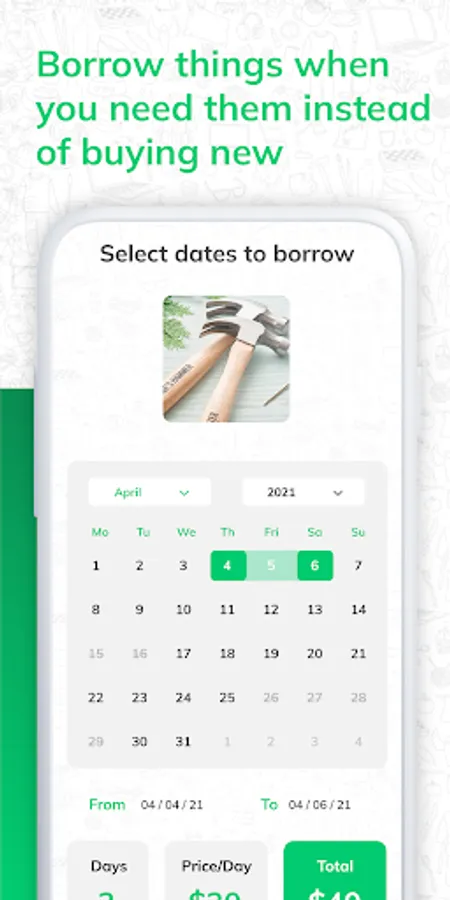 Get the best of both worlds when you lend items as you make money while making connections. And when you borrow, do so with ease knowing that the day rate will be reasonable and fair. The vast catalog of items means that whatever you need someone to loan you, you can probably find. And between equipment rentals and clothing shares, each item posted on the app gets an extension of its lease on life!