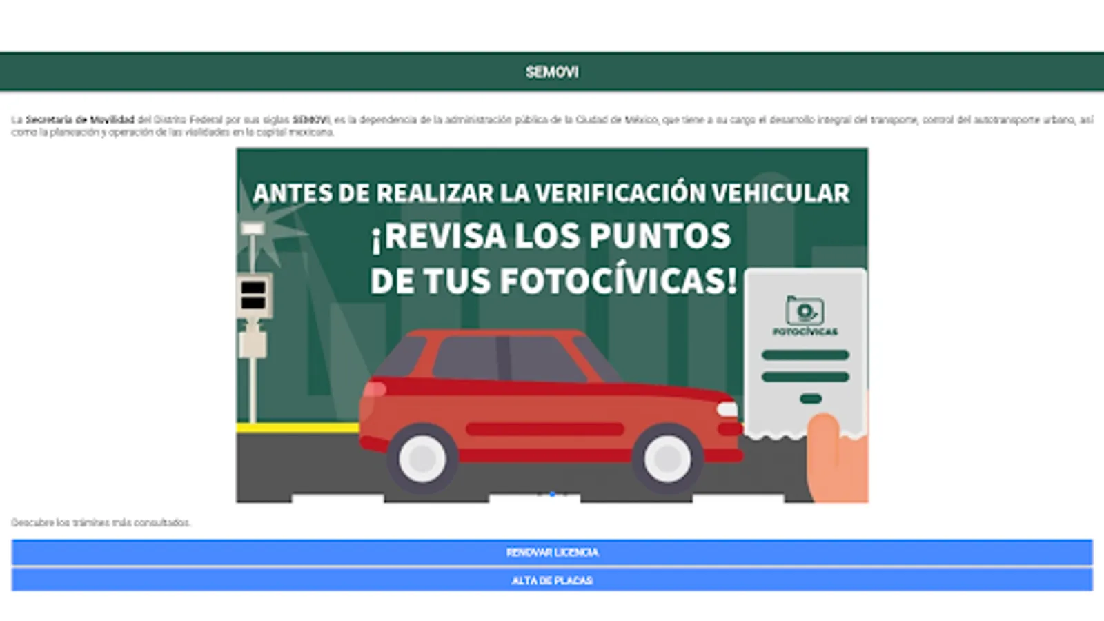 Discharge of responsibility: This is not an official application and does not have any relationship with the Government of Mexico. The information provided here is public access on the website of: https://www.semovi.cdmx.gob.mx/