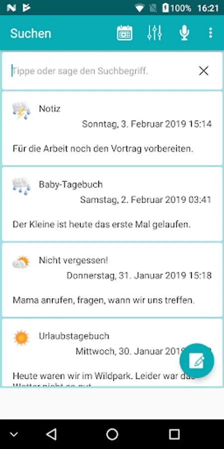 Partizept is an all in one solution for all kinds of entries. You can keep a journal and write reminders with Partizept. Through the timeline you always have a good overview of past or future events. Photos can be added to the entries. If you like, you can even create a postcard and send it. Partizept even has a voice input on board. The app is very flexible, you can use it for a lot. You can secure your entries using a fingerprint sensor or PIN.