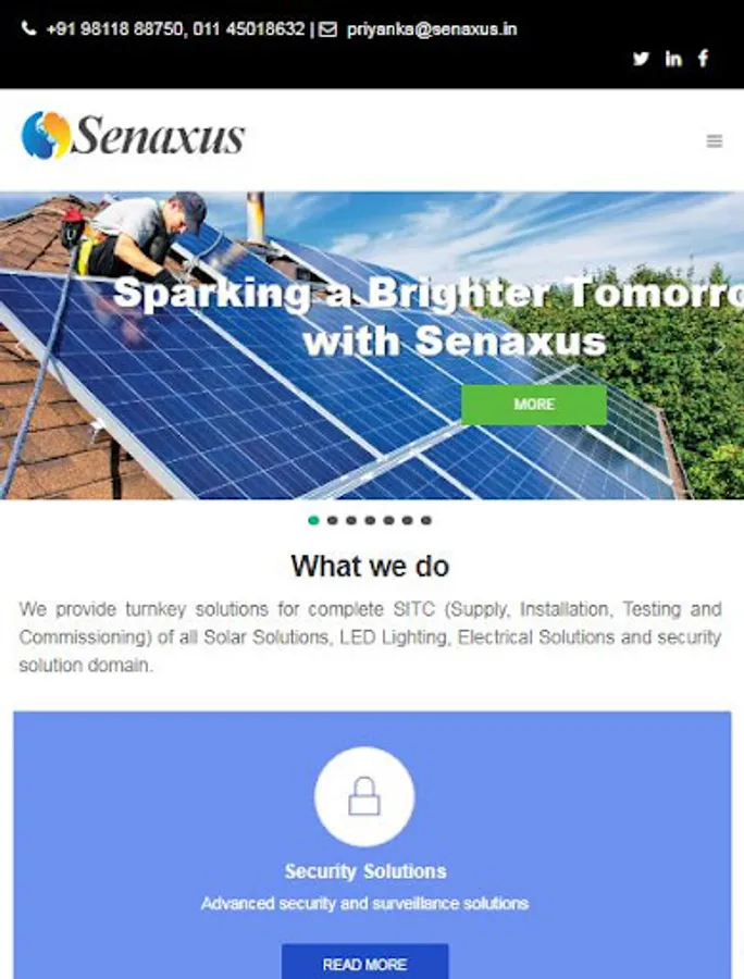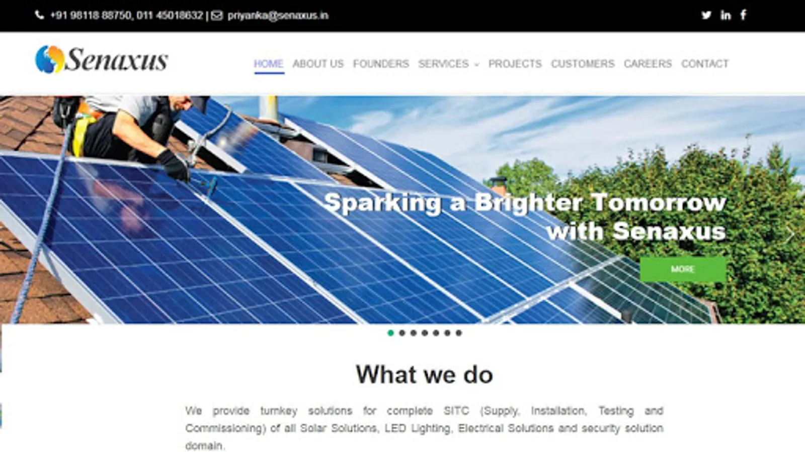 Establised in the year 2014, Senaxus Technologies Private Limited (STPL) is a humble effort and joint venture of two visionaries - Mr. Rajesh Kumar Budia (BE, MBA) & Mr. Vikas Owdhbal (BE, MBA). The profound experience of more than two decade will definitely help STPL to become one of the top players in the industry in Solar Solutions, LED Lighting, Electrical Solutions and security solution domain in a short span of time.
